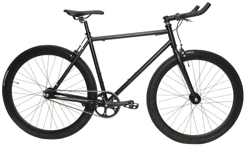 Urban attack vehicle, durable, fast, lightweight, and easy to maintain. Comes with an aluminum frame, reinforced wheels, and caliper brakes front and rear. Also comes with a flip-flop rear wheel where you can run a single-speed freewheel on one side and a fixed gear on the other.