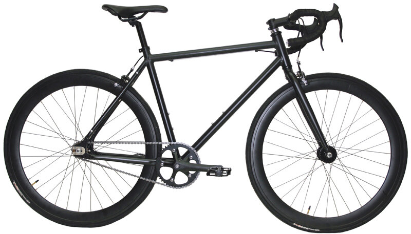 Urban attack vehicle, durable, fast, lightweight, and easy to maintain. Comes with an aluminum frame, reinforced wheels, and caliper brakes front and rear. Also comes with a flip-flop rear wheel where you can run a single-speed freewheel on one side and a fixed gear on the other.
